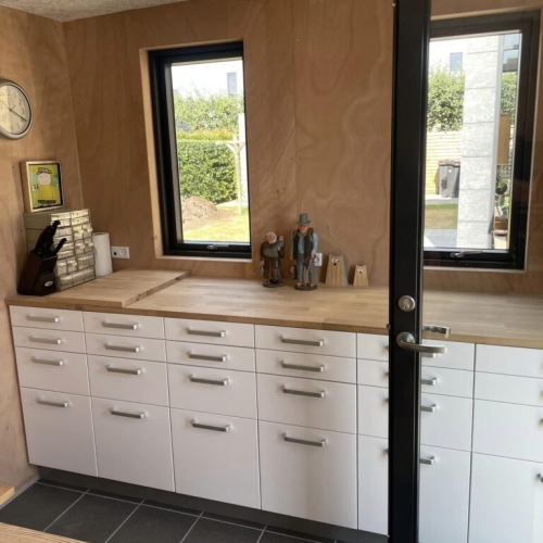 Daniel kommer igen, når vi skal have monteret bordplade og lavet de sidste ting i samme ombæring om en lille måned.